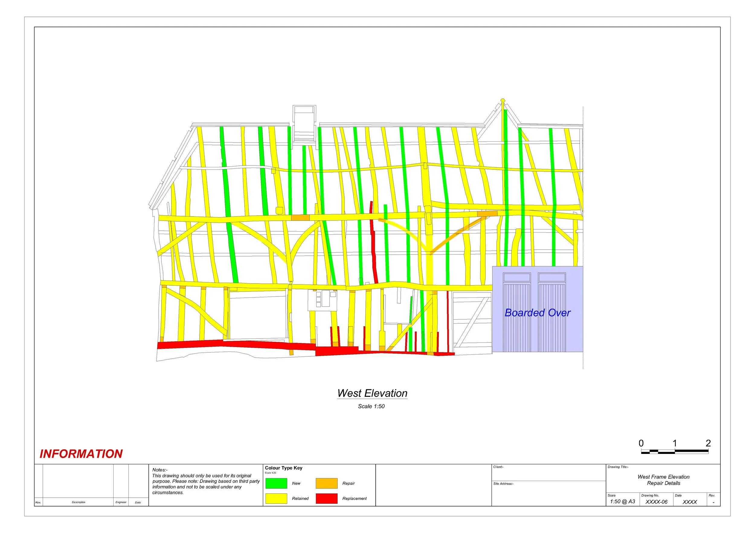 Timber frame repair schedule for a listed building barn conversion, Suffolk